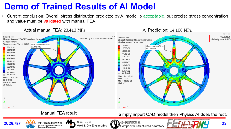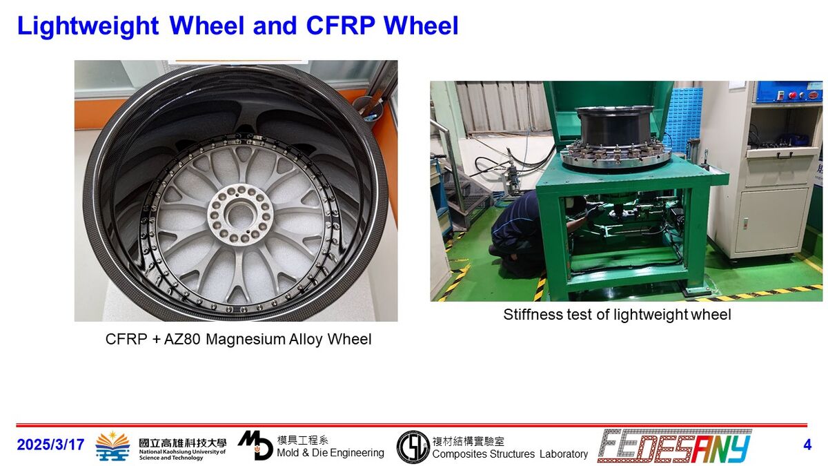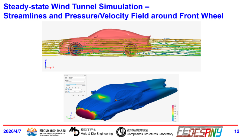 Our lab FEDESANY has kept doing industrial collaboration projects in recent years to design and develop lightweight structural components by using finite element analysis (FEA) technique, including: carbon-fiber reinforced polymers (CFRP) wheel, magnesium alloy wheel, brake caliper, AI model to predict stress on new wheel subjected to bending loadcase, evaluation of mechanical properties suitable to ultra lightweight chassis components for automotive industry, heat transfer analysis of culture plate for medical use (collaboration with Charité Medical University of Berlin). In 2026-2027 session, we may have some other projects, including: evaluation of aerodynamic performance of wheel covers, design of delivery cabin for rotary-wing drone (collaboration with Hochschule Esslingen, Germany), simulation of delamination of CFRP structural components, construction of fatigue properties of magnesium alloy … etc. Actual projects may vary since some are in early discussion. Scholarships and accommodation: * The student will receive a monthly scholarship in minimum 15,000 NTD based on the availability of budget to help cover the living expenses. * During the program, we'll assist with finding the accommodation (in campus or out of campus) and provide the local medical insurance option for the student. Duration: Maximum 6 months. Participation requirements: • Final-year student in bachelor’s degree, master’s degree, or diploma program, related to mechanical engineering, automotive engineering, aerospace engineering, composites, polymer technology • Language proficiency in English is adequate for effective communication and learning • Familiar with manufacturing of composites or lightweight alloy • Have basic knowledge of conducting finite-element analysis.