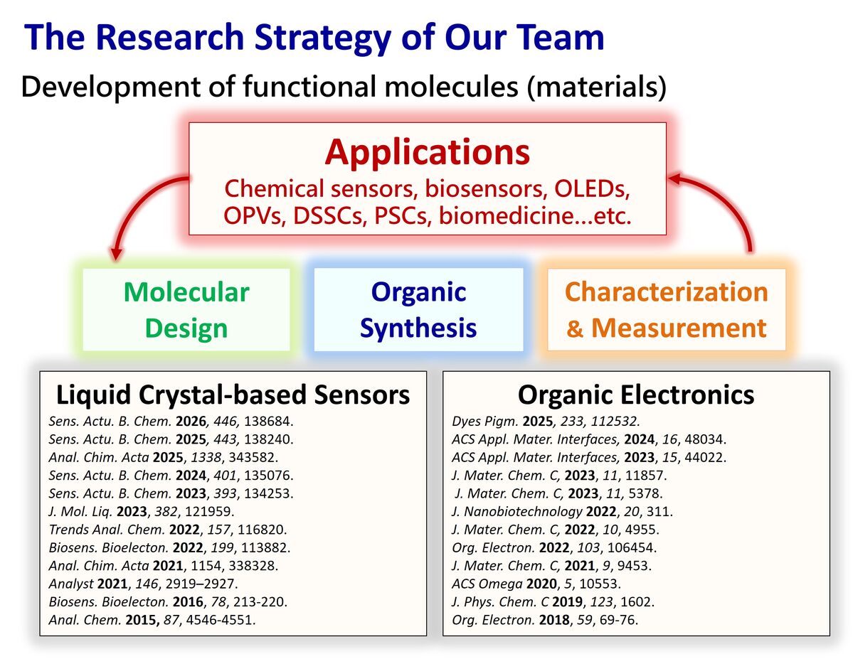 Our research focuses on the design and synthesis of organic materials and their applications in various fields, including chemical sensors, organic light-emitting diodes, and organic solar cells. As part of this program, students will acquire essential skills in organic synthesis and gain hands-on experience with advanced chemistry research instruments, such as NMR, mass spectrometers, UV-Vis and fluorescence spectrometers, as well as liquid and gas chromatography tools. Because this is a research-based project, applicants with basic experimental skills in a chemistry laboratory, or those who plan to pursue graduate study in Taiwan, are preferred. At present, Tamkang University hosts approximately 2,000 international students. Students studying at TKU may choose to stay in on-campus dormitories or rent accommodations near the campus, typically costing between 4,000 and 6,000 NTD per month. In addition, through the TEEP program, each student is eligible for a living subsidy of 15,000 NTD per month. If you are interested in our program, please send a brief CV to Prof. Chih-Hsin Chen for consideration.