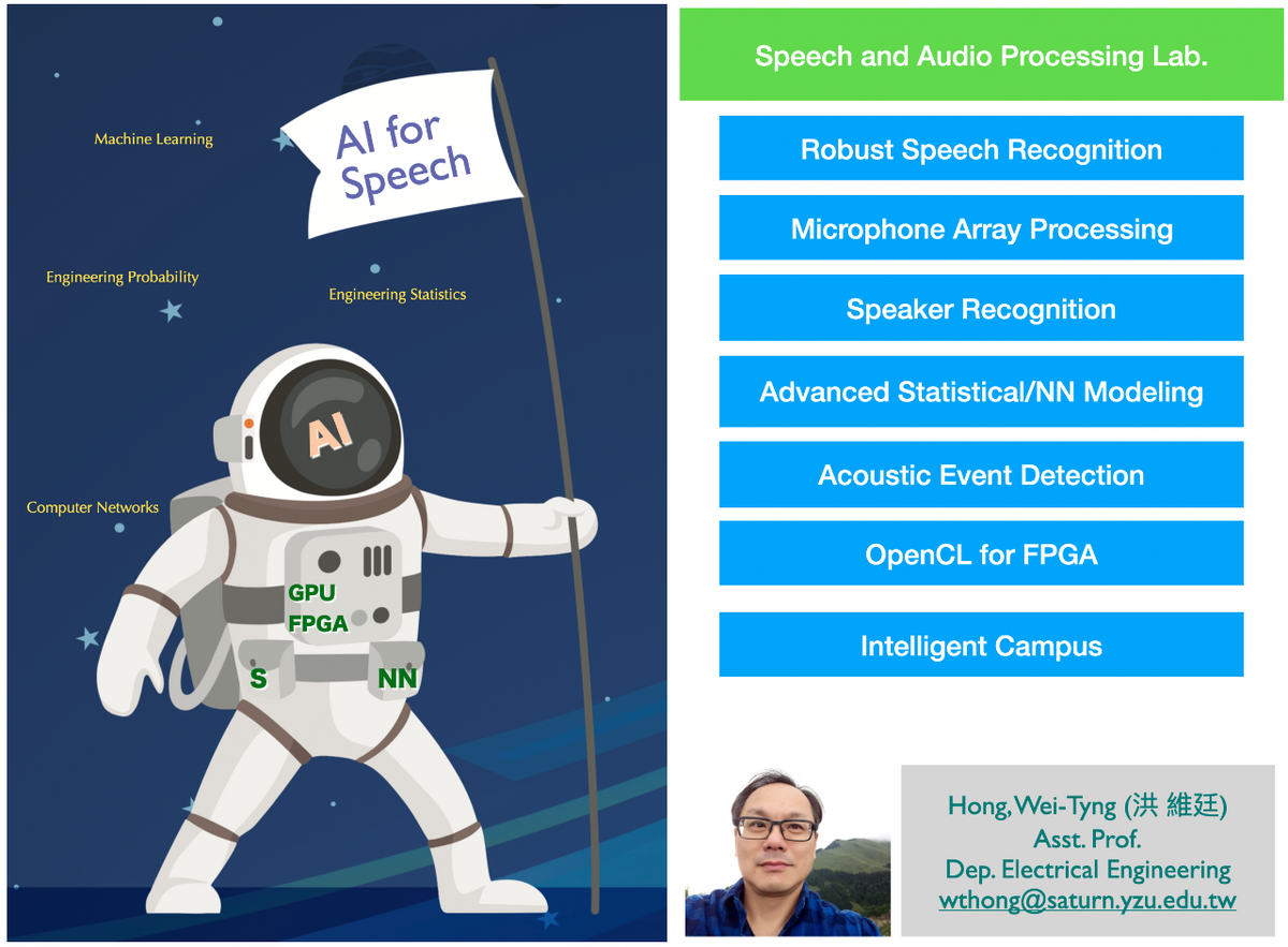 This program invites one international student to join Prof. Wei-Tyng Hong's research team in the Department of Electrical Engineering at Yuan Ze University for a 5-month research internship. The participant will assist in developing AI speech processing and voice anonymization systems using deep neural networks and generative models. Scholarship: NT$16,000/month (funded by the TEEP program). A small monthly insurance fee will be deducted. The scholarship is tax-exempt. Duration: 5 months (minimum 2 months). Applicants should be currently enrolled in or have recently completed a bachelor's or master's program, with working proficiency in Python and some experience using PyTorch. Functional English communication skills are sufficient; fluency is not required. Prior experience in speech/audio processing or generative models is a plus but not required.